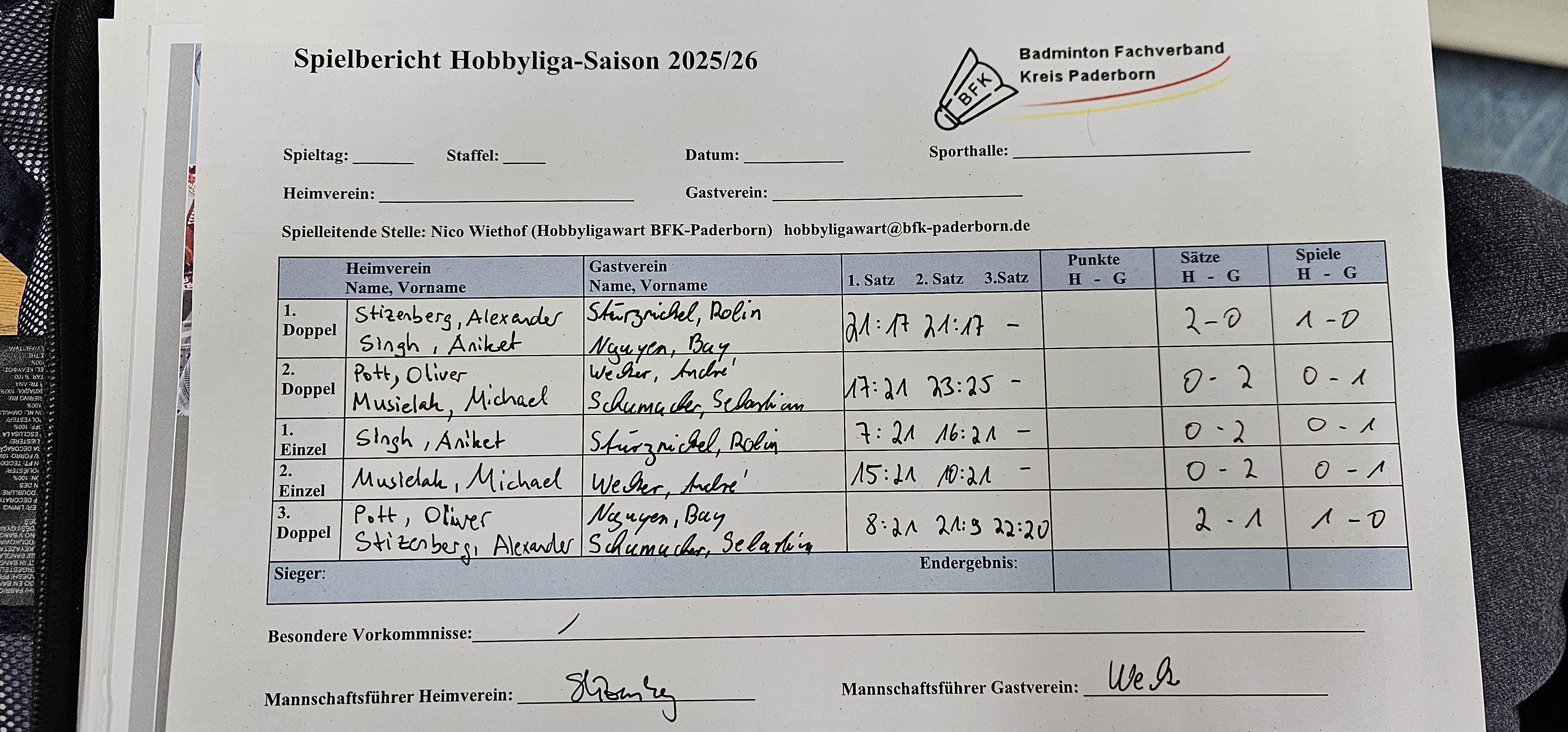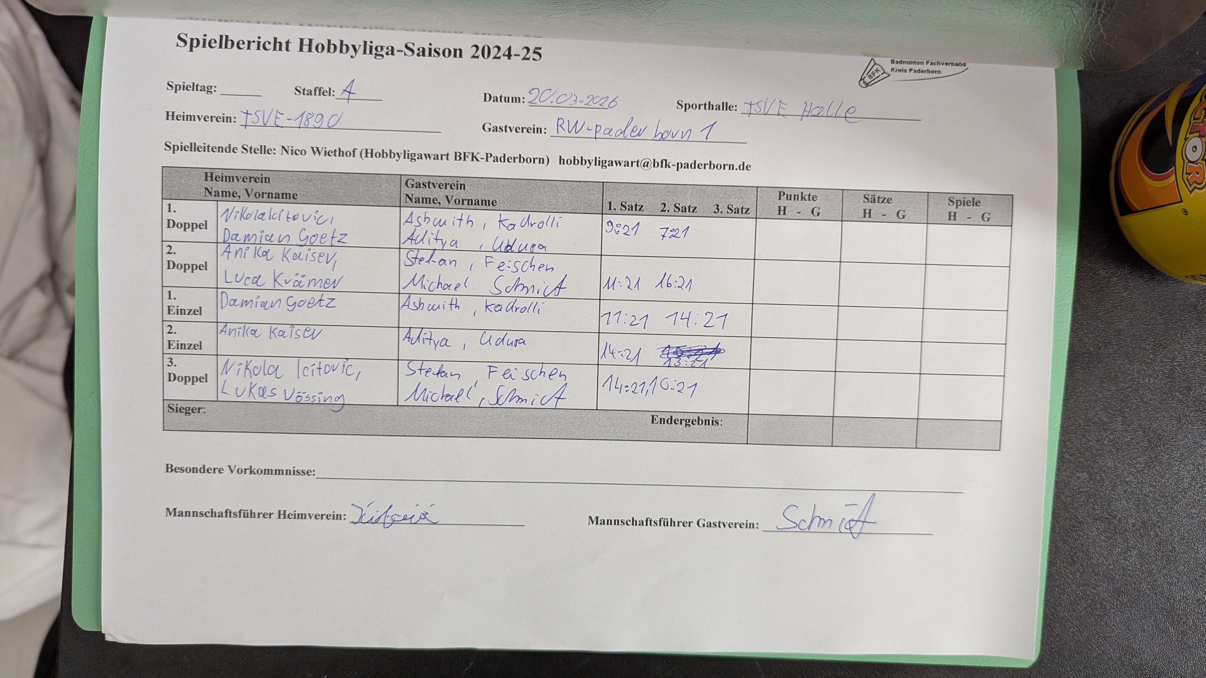 Die Spielberichte sind jeweils der Heimmannschaft zugeordnet!